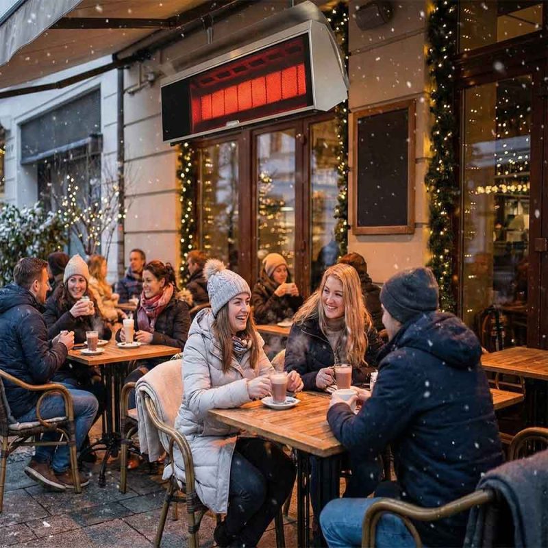 Kafe, restaurant, hotel gibi işletmelerin teras veya bahçe gibi dış mekanlarında kullanımına göre tasarlanmıştır. Çelik paslanmaz ve siyah ısıya dayanıklı camıyla şık görünüme sahiptir. C4 , C6 ve C8 modelleriyle alan büyüklüğüne göre kullanım sağlar. Müşterileriniz, misafirleriniz ve çalışanlarınız için soğuk günlerde, sıcak çözümler sunar.