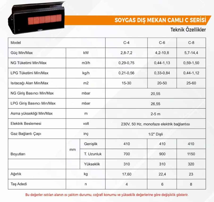 Soygas Platin C Serisi soğuk havalarda dış mekanlardaki müşteri veya misafirlerinize ısıtma hizmeti sunar..